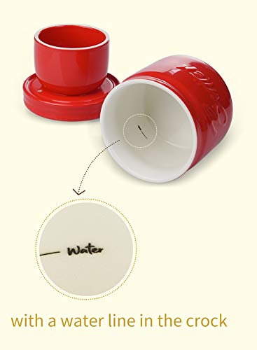 • Porcelain Butter Crock Keeper, French Butter Dish with Lid, Butter Crocks with Water Line - Keep Butter Spreadable without Fridge, Red - Better Butter