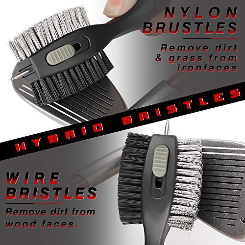 • Champkey PRO Retractable Golf Club Brush - Oversized Brush Head,Soft Rubber Hand Grip & Retractable Groove Cleaner Golf Brush (Grey)