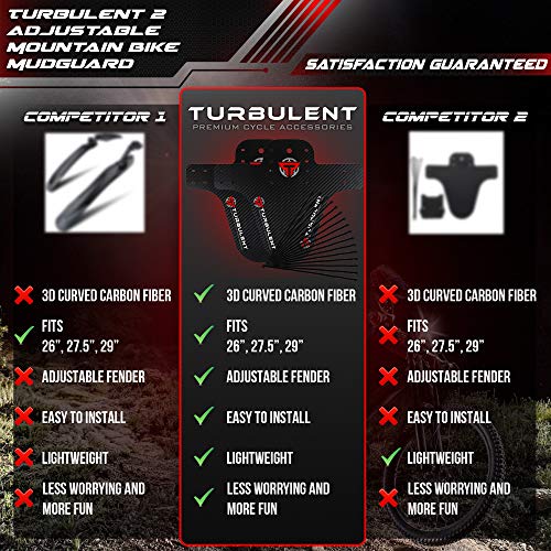 • Turbulent - Pair Adjustable Mountain Bike Mudguard – Bicycle MTB Wheel Fender – Front and Rear Compatible – Fits 26”, 27.5”, 29” – Carbon Fiber Grain Mud Guard Installation – Back Side (Black)