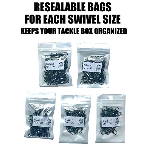 Big Worm Fishing 150 Fishing Swivels Fishing Tackle Assortment - Fishing Swivels with Snaps – Snap Swivels Fishing Swivel – Fishing Snap Swivels Snap Swivel Fishing Swivels Freshwater – Swivel Fishing Clips