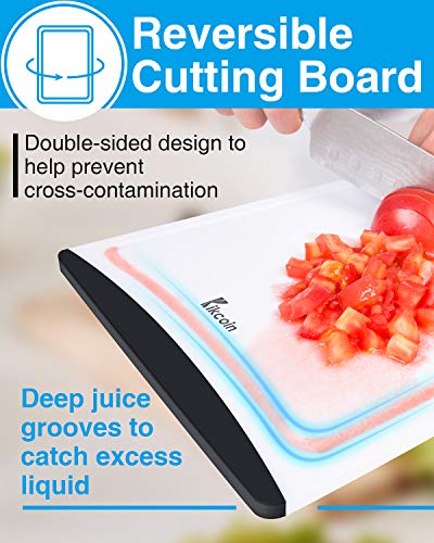 • Extra Large Cutting Boards, Plastic Cutting Board for Kitchen Dishwasher Safe Non Slip Chopping Board Set of 3 with Juice Grooves, Easy Grip Handle, Kikcoin