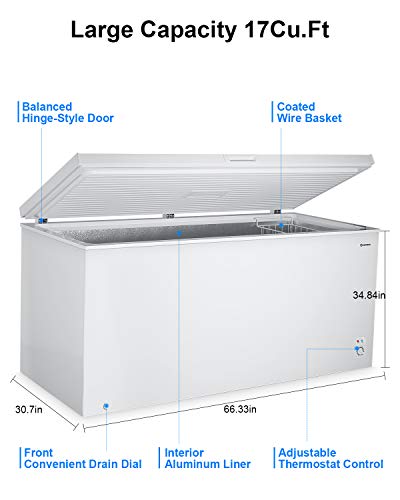 • MOOSOO Chest Freezer, 17.67 Cubic Feet with 2 Removable Storage Basket Deep Freezer 7 Gears Temperature Control Energy Saving CSA Certificated