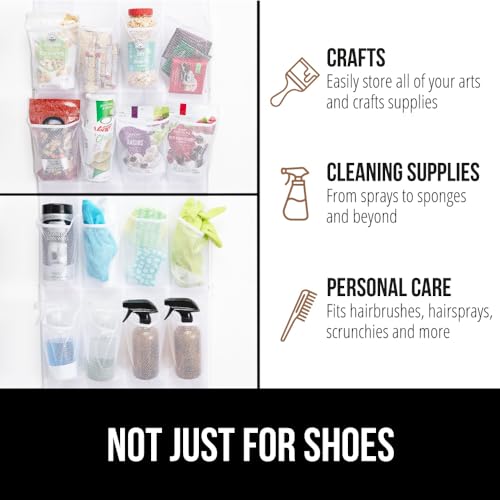 • GORILLA GRIP Over the Door Shoe Organizer, 24 Large Breathable Mesh Pockets, Space Saving Hanging Storage Holder, Closet Rack Hanger Holds Up to 40 lbs, Hangs on Closets for Shoes, Accessories, White