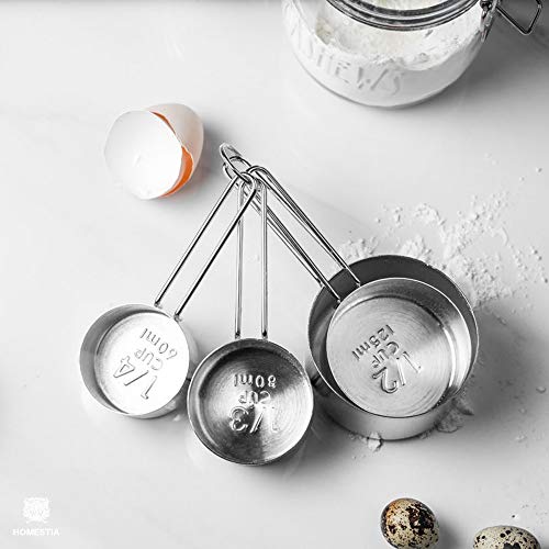 • Homestia Stainless Steel Measuring Cups and Spoons Set of 8 Pcs Baking Cooking Utensils with Measurement for Dry and Liquid Ingredients, Silver