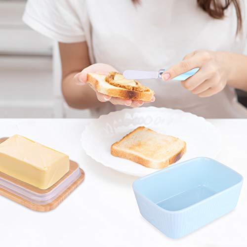 • Ceramic Butter Dish with Lid, Porcelain Butter Container Keeper with Bamboo Lid Steel Knife for Countertop, CIYOYO 2020 New Covered Butter Storage for Small Butter, Blue