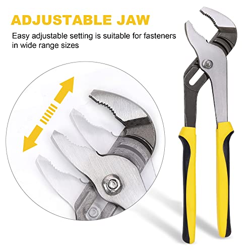 TOPLINE 4-piece Groove Joint Pliers Set with Bi-Material Handles, Tongue and Groove Pliers Set Included 12-in, 10-in, 8-in and 6-in, Perfect for Plumbing Repair and Basic Home Maintenance, Yellow