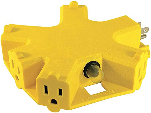 • Clear Power 100 ft 12/3 SJTOW Extra Heavy Duty Contractor Grade Extension Cord with 5 Outlet Adapter Combo, Oil Water & Weather Resistant, Flame Retardant, Yellow, 3 Prong Grounded Plug, CPCO90001