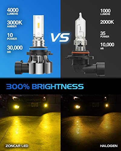 • ZonCar H10 Led Fog Light Bulbs Yellow, 3000K Golden Yellow 4000 Lumens Super Brighter H10 9145 9140 Fog Light Bulbs 12V High Power Fog Light Bulb Replacement IP67 Waterproof Fog Lamp Bulbs, Pack 2