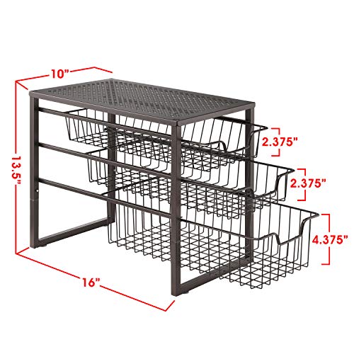 • Simple Trending 3-Tier Under Sink Cabinet Organizer with Sliding Storage Drawer, Desktop Organizer for Kitchen Bathroom Office, Stackable,Bronze