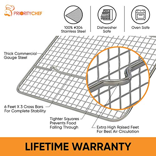 • PriorityChef Cooling Rack and Baking Rack, Fits Quarter Sheet Pan, 100% 304 Stainless Steel, Wire Baking Cookie Bacon Racks For Oven Use