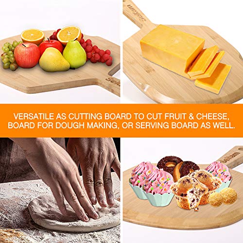 • SEKAM Wood Pizza Peel - Wooden Pizza Paddle Spatula for Homemade Pizza Bread Baking Peel - Bamboo Pizza Cutting Board for Cheese/Fruit - Pizza Board with Handle (17 x 12 inch)