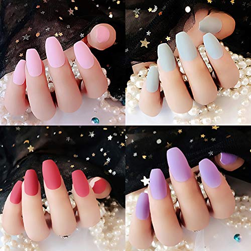 • 24 Sets 576 Pieces Matte False Nails Ballerina Coffin False Nails Full Cover Fake Nails Tips with 6 Bottles of Glue for Women Girls Nail Decorations, 24 Colors