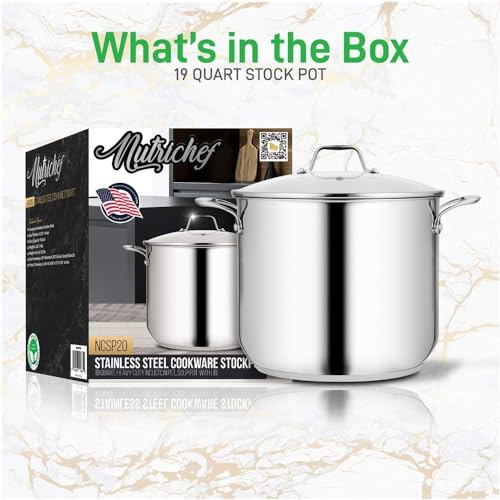 • NutriChef 19-Quart Stainless Steel Stock Pot - 18/8 Food Grade Heavy Duty Induction Large Stock Pot, Stew Pot, Simmering Pot, Soup Pot with See Through Lid, Dishwasher Safe - NutriChef NCSP20