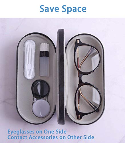 Muf 2 in 1 Double Sided Portable Contact Lens Case and Glasses Case,Dual Use Design with Built-in Mirror, Tweezer and Contact Lens Solution Bottle Included for Travel Kit(Black), 5 Piece Set