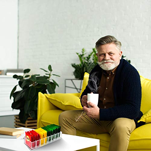 • ALCYON Tea Bag Organizer Holder for Kitchen Pantry Cabinet, Countertop, Tea Storage Box Station Bin Caddy Holds Beverage Bags| Sweeter| ketchup packets| Spice Pouches| Dressing Mixes - Transparent
