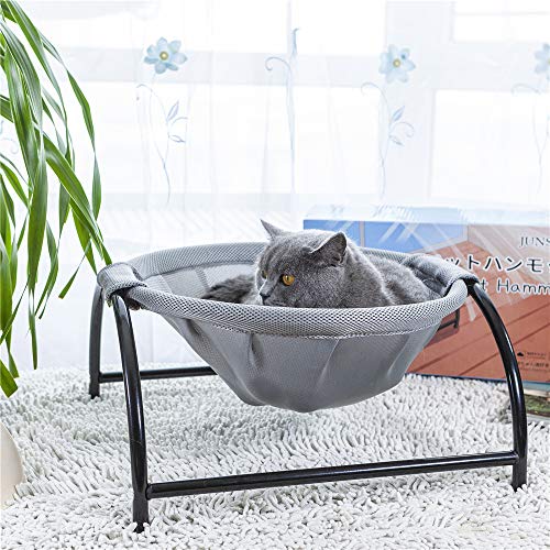 JUNSPOW Cat Bed Dog/Pet Hammock Bed Free-Standing Kitty Sleeping Cat Supplies Pet Supplies Whole Wash Stable & Breathable Easy Assembly Indoors Outdoors, 16.9 in x 16.9 in x 9.5 in, Grey, 16.9"L x 16.9"W x 9.5"Th