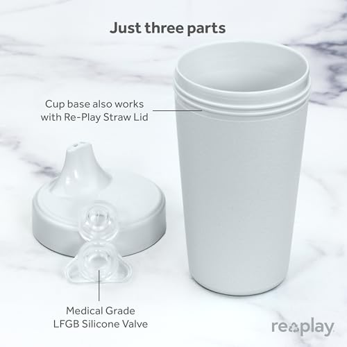 Re-Play Made in USA 10 Oz. Sippy Cups for Toddlers, Pack of 4 - Reusable Spill Proof Cups for Kids, Dishwasher/Microwave Safe - Hard Spout Sippy Cups for Toddlers 3.13" x 6.25", Glacier, 4 Count (Pack of 1)