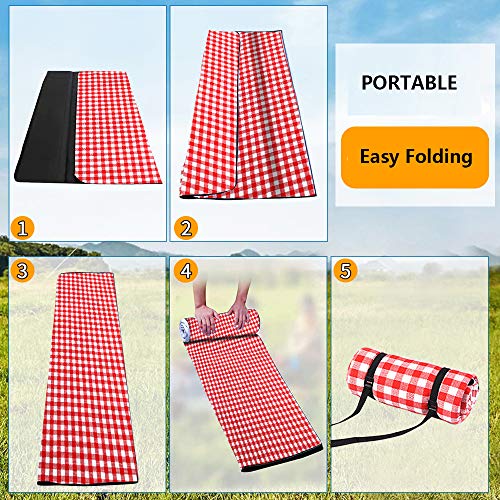 • Outdoor Picnic Blankets 3 Layers for Water-Resistant Handy Mat Park Blanket Beach Mat Family Size Portable Heavy Duty Lawn Blanket for Outdoor Travel Camping (79" x 60", Red)
