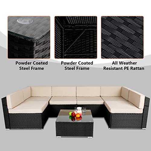 • U-MAX 7 Piece Outdoor Patio Furniture Set, Black PE Rattan Wicker Sofa Set, Outdoor Sectional Furniture Chair Set with Cushions and Tea Table, Black