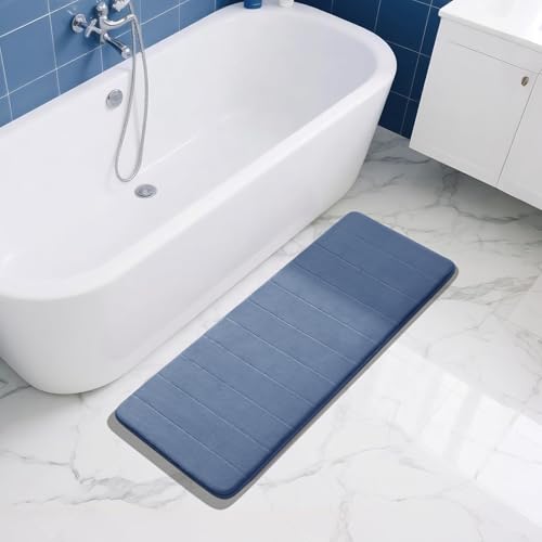 • Yimobra Long Bath Mat 44"x24", Super Soft Quick Dry Memory Foam Bathroom Rug, Water Absorbent, Non Slip Backing Machine Washable for Tub Shower, Thick Comfort Support, Denim Blue