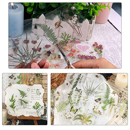 RisyPisy 4 Themes Sticker Set, 12 Sheets Flower Plant Style PET Decorative Stickers Collection for Scrapbooking, DIY Crafts, Bullet Journal for Children, Teenager, Adult, Set-b