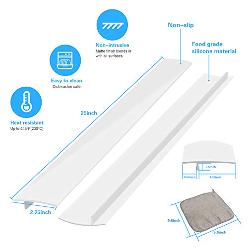 Silicone Stove Counter Gap Cover, 25 inches ledorr Flexible Space Filler Stopper Seal Spill, Reusable Heat-Resistant for Kitchen Stovetop Oven Appliance Washer Dryer Washing Machine (2 Pack White), 25inch(L) x 2.25inch(W)