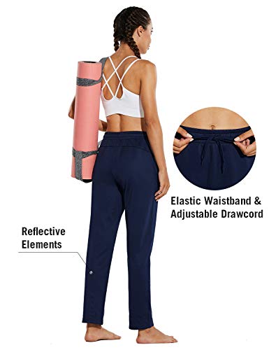 BALEAF Women's Lightweight Fleece Sweatpants Running Zipper Pockets Athletic Winter Sports Pants Warm Navy Size XL, X-Large