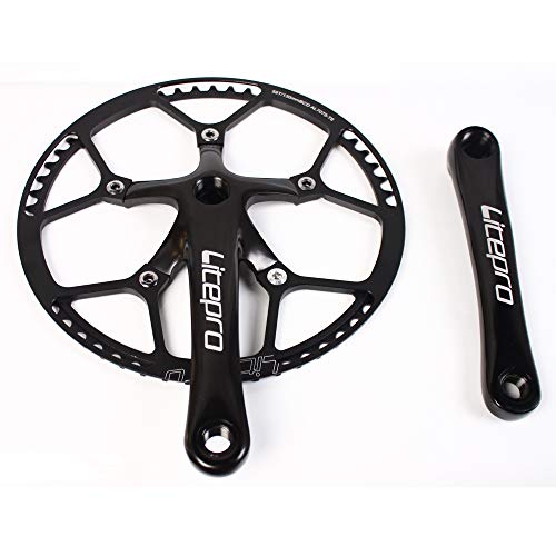 BUCKLOS 【US Stock】 Folding Bike 130 BCD Crank, Round Single Speed Chainring 45T 47T 53T 56T 58T, Bicycle Black Aluminium Alloy Ultralight Sprocket Crankset, Fit 14'' 16'' 20'' Folding Bike