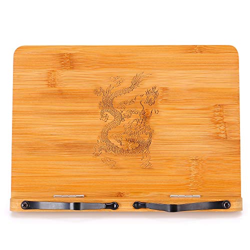 • MEGREZ Foldable Bamboo Cook Stand (11 x 8.5 inch), Portable Reading Frame Rest Holder Desk Bookrest Cookbook Book Stand/Tablet PC Stand/Textbook Bookstands/Music Document Stand, Dragon