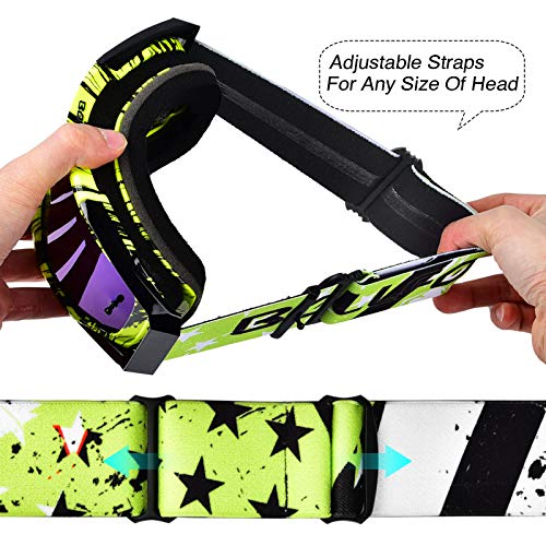• BOLLFO Motorcycle Goggles Motocross ATY Dirt Bike Goggles Anti-UV Safety Protective Anti Fog Tactical Goggles for Cycling Riding Climbing Skiing (Green Frame Blue Lenses)