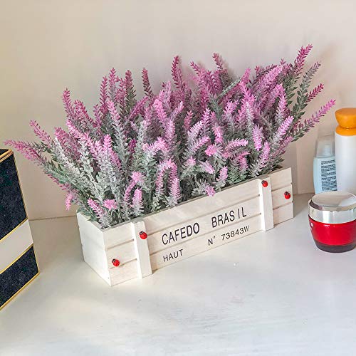 • Artificial Flowers Plant - Potted Artificial Flocking Lavender, Fake Lavender Flower in Wooden Vase for Home Decor Party Wedding Office Decoration (Set of 2)