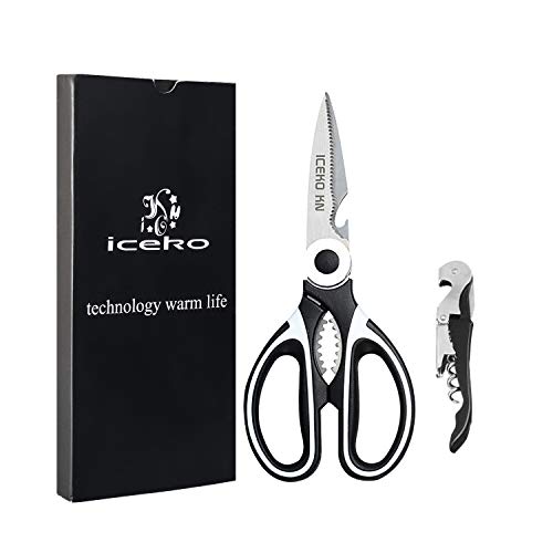 ICEKO KN Heavy Duty Kitchen Scissors &Corkscrew Set,Food-Grade Stainless Steel Kitchen Shears,Ultra Sharp Multifunctional for Cutting Poultry/Meat/Chicken/Herbs/Turkey/Pizza( with Blade Cover )