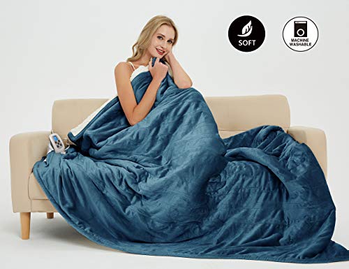 • MARQUESS Electric Blanket MicroPlush Sherpa and Cozy Flannel Washable Comfortable with 10 Heat Settings, Washable & Reversible (Navy, 62"x 84")