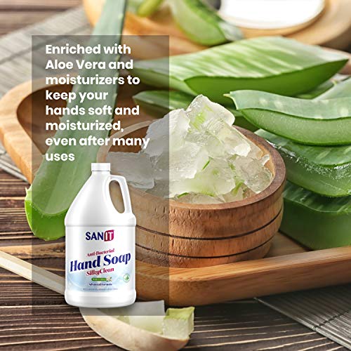 Sanit Silky Clean Antibacterial Liquid Hand Soap Refill - Advanced Formula with Coconut Oil and Aloe Vera - All Natural Moisturizing Hand Wash - Made in USA, White Tea, 1 Gallon, 1 Pack