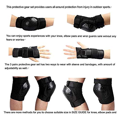 DOMEANYWAY Knee Pads for Kids/Youth, Protective Gear Set with Elbow Pads, Wrist Guards for Skateboarding, Inline Roller Skating, Rollerblade, Cycling, Snowboarding, Scooter & Bike Riding 6pcs, BLACK, Medium Item Sku: