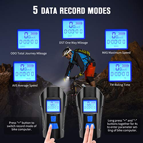 • AOPOY LED Bicycle Light Set, USB Rechargeable Bike Light Set with Free Tail Light, Bicycle Speedometer Odometer for Bike, 1500 mAh Power Bank, 800LM, Mountain Bike Lights for Night Riding