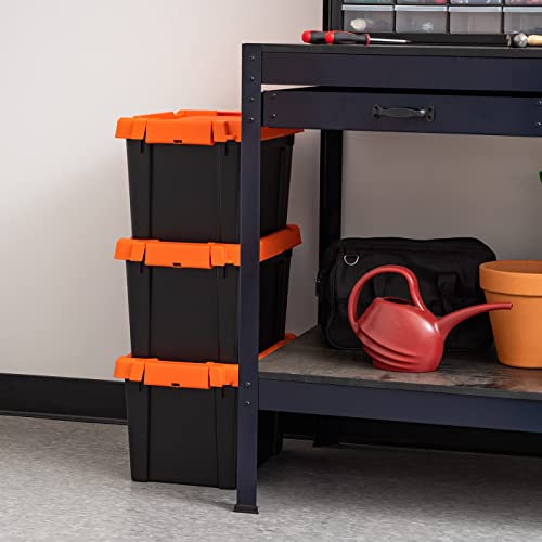 • IRIS USA 5 Gallon Heavy-Duty Plastic Storage Bins, 3 Pack, Store-It-All Container Totes with Durable Lid and Secure Latching Buckles, Garage and Metal Rack Organizing, Stackable, Black/Orange