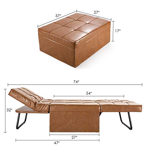 Vonanda Faux Leather Ottoman Sofa Bed,Small Modern Couch Multi-Position Convertible with Selected Leather Fabrics and Unique Sturdy Frame for Small Space, Caramel, Large