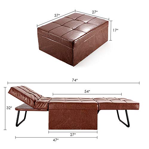 Vonanda Leather Ottoman Sleeper Chair Bed, Small Modern Couch Multi-Position Convertible with Selected Leather Fabrics and Unique Sturdy Frame for Small Space, Burgundy, Brown, Large