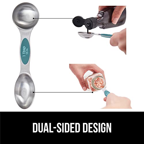 Gorilla Grip 8 Piece 100% BPA Free Magnetic Nesting Stainless Steel Measuring Spoon Set with Leveler, Dual Sided for Liquid, Dry Ingredients, Cream and Sugar Kitchen Spoons, Baking, Cooking, Turquoise