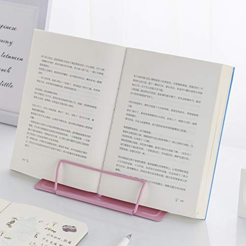 MSDADA Book Stand Metal Reading Rest Book Holder Adjustable Cookbook Documents Holder Bookstands for Textbooks Christmas Gifts for 6 7 8 9-16 Girls and Boys, Birthday Gifts for Girls Kids Mom (Pink)
