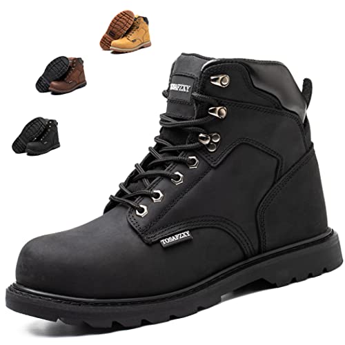 • TOSAFZXY Work Safety Boots for Men Durable Crazy-Horse Leather Indestructible Steel Toe Waterproof and Non-Slip Better Warmth Men Work Shoes Black 12