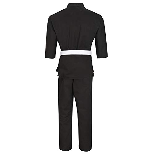 Knockout Fight Gear Knockout Martial Arts Karate Black Uniform for Kids & Adults Medium Weight Taekwondo Gi Free White Belt…(Black, 2 (4'9"-5'/80 lbs)), 2 (4'9"-5'/110 lbs)