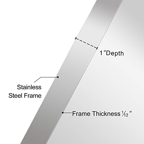 • ANDY STAR Polished Nickel Mirror for Bathroom, 22”x30” Silver Metal Frame Wall Mirror, Rectangular Stainless Steel Rounded Corner Mirror with 1’’ Deep Set Design Hangs Horizontal Or Vertical