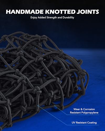 • Orion Motor Tech 2'x3' Small Cargo Net with 2"x2" Small Mesh, 4x6 Foot Max Size Cargo Net for SUV Roof Rack Cargo Basket Net with Locking Carabiners, Ratchet Strap, Roof Rack Net