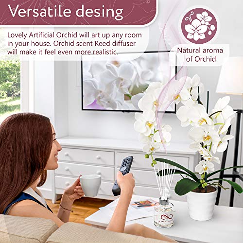 • Artificial Orchid Flowers Fake Potted Plants - Indoor Faux House Plants for Table Decor - Artificial Decorative Flowers for Delivery - White Silk Flowers in Vase for Decoration - Fragrance as a Gift