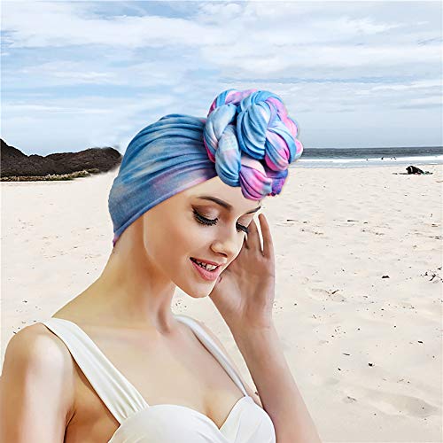 • 4 Pieces Tie Dye Stretch Jersey Turban Head Wrap Upgrade Urban Knit Hair Scarf Headwraps Urban Hair Scarf Solid Color for Braids Dreadlock Ultra Soft Extra Long Breathable Head Band Tie for Women
