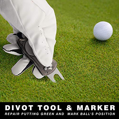 • Champkey Waffle Golf Towels with Golf Club Brush and Divot Tool (3 in 1) | Quick Dry Golf Cleaning Towel with Oversize Retractable Golf Brush and Premium Divot Tool Ideal for Golfer
