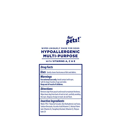 • Wet Ones for Pets Hypoallergenic Multi-Purpose Dog Wipes with Vitamins A,C & E,Fragrance-Free Hypoallergenic Dog Wipes for All Dogs Wipes Multipurpose (FF14364PCS12)(Pack of 12,1200 Count)