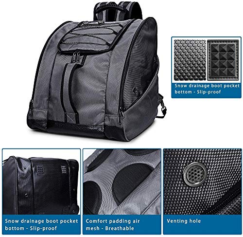 • SoarOwl Ski Boot Bag –Skiing Travel Luggage, Excellent for Travel with Waterproof Exterior & Bottom - for Men, Women and Youth (B-Grey)